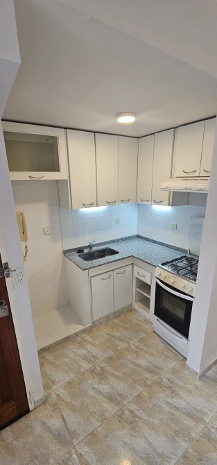 Cocina-living-comedor de 4 m x 5 m con bajo y sobre mesada, aire acondicionado frío y estufa tiro balanceado;