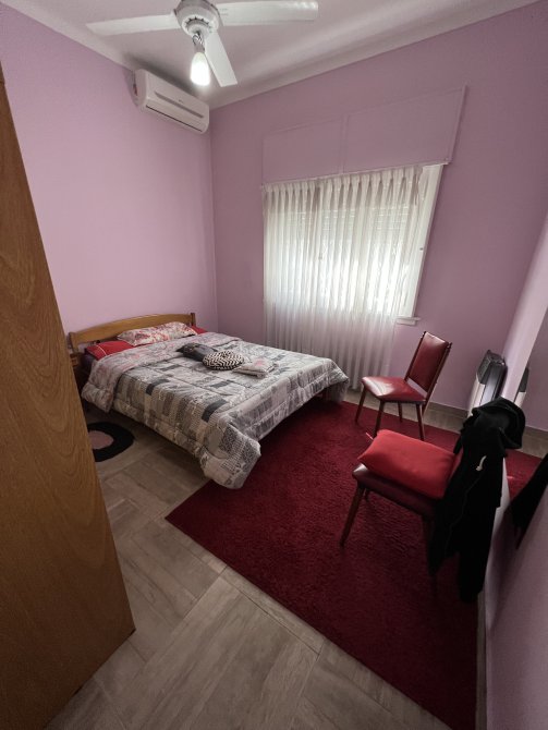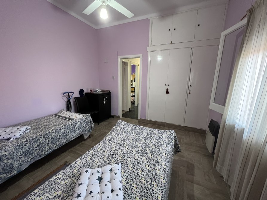 UN DORMITORIO AL FRENTE DE 3.50M X 4.30M C/ A/A Y ESTUFA, TAMBIÉN C/ PLACARD, VENTANA C/ REJA, PERSIANA Y MOSQUITERO, PISO DE CERÁMICA SÍMIL MADERA