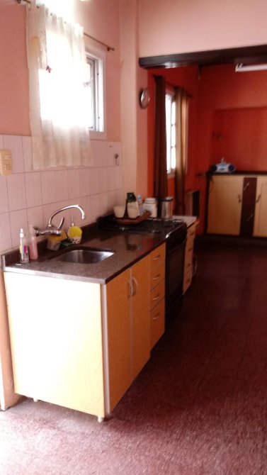 Patio de entrada de 2,20 m x 11,40 m con lavadero de 2 m x 3,10 m con termotanque; cocina-comedor de 2,60 m x 5,55 m con bajo mesada;