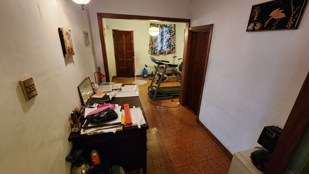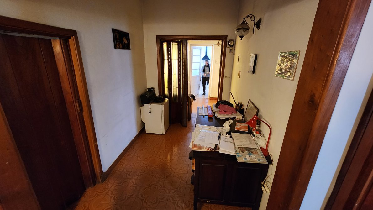 Pasillo doble entrada directo al fondo con escalera caracol a terraza.