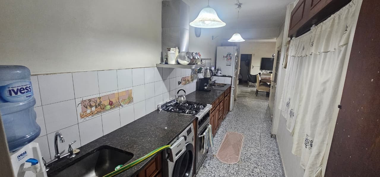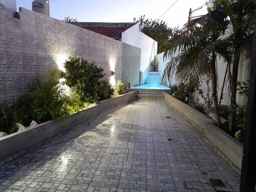 LIVING DE ENTRADA DE 5,60 M X 4 M; DISTRIBUIDOR CON 2 BAÑOS CON RECEPTÁCULO; DORMITORIO DE 2,50 M X 3 M CON PLACARD; DORMITORIO PRINCIPAL DE 3,50 M X 3,40 M CON PLACARD Y PISO DE PARQUET; COMEDOR DE 4,10 M X 3,50 M INTEGRADO CON EL LIVING NOMBRADO ANTERIORMENTE; DORMITORIO DE 1,85 M X 3,60 M CON PLACARD; COCINA DE 6,20 M X 1,80 M CON GRAN MESADA CON MUEBLES BAJO Y SOBRE MESADA; QUINCHO/COCHERA DE 8,30 M X 7,20 M CON PARRILLA; PATIO EN TRIANGULO DE 5,50 M X 10 M CON CANTEROS Y PEQUEÑA PISCINA; 2DO PATIO IRREGULAR DE 12 M X 3 M CON ESCALERA A TERRAZA DE 8,60 M X 16,30 M.