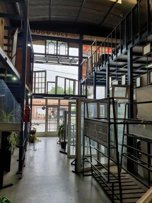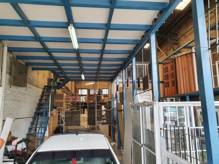 El galpón está construido sobre los primeros 30 mts del lote. Con tinglado de 8,50 mts de altura, con 3 entrepisos con oficina y depósito, quedando 8,66 mts x 15 mts libre.