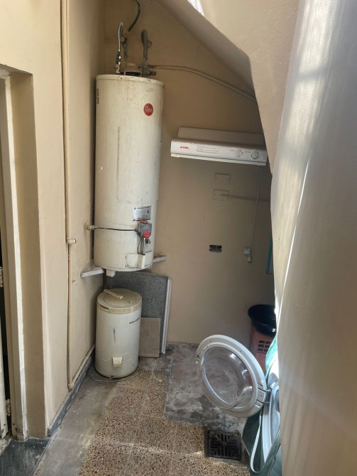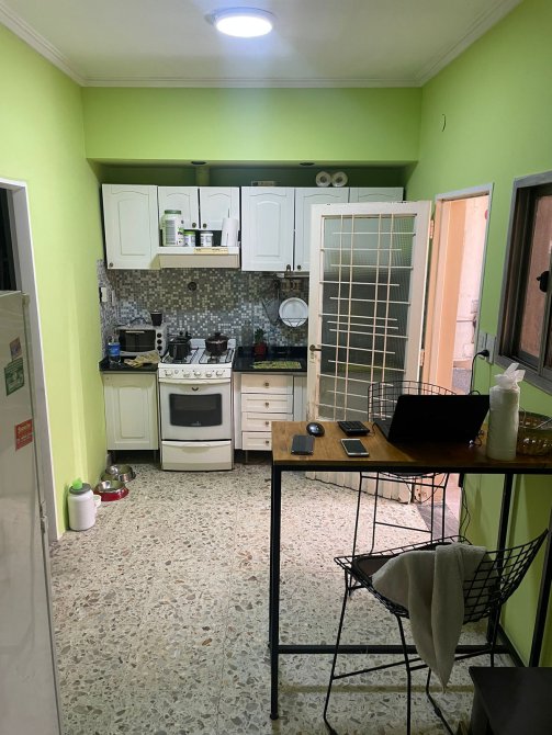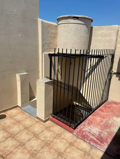 Pequeño patio cubierto de 3,25 m x 1,95 m con lavadero, termotanque y escalera a terraza de 4,60 m x 3,40 m con ambiente de 2,45 m x 4,55 m.