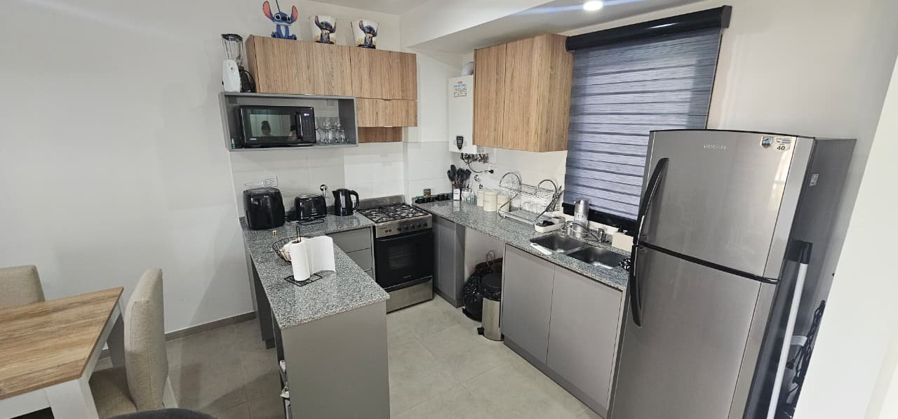 COCINA-LIVING-COMEDOR DE 5,20 M X 4,60 M CON BAJO Y SOBRE MESADA, CONEXIÓN PARA LAVARROPAS Y CALDERA DUAL PARA AGUA CALIENTE Y RADIADORES EN TODOS LOS AMBIENTES;