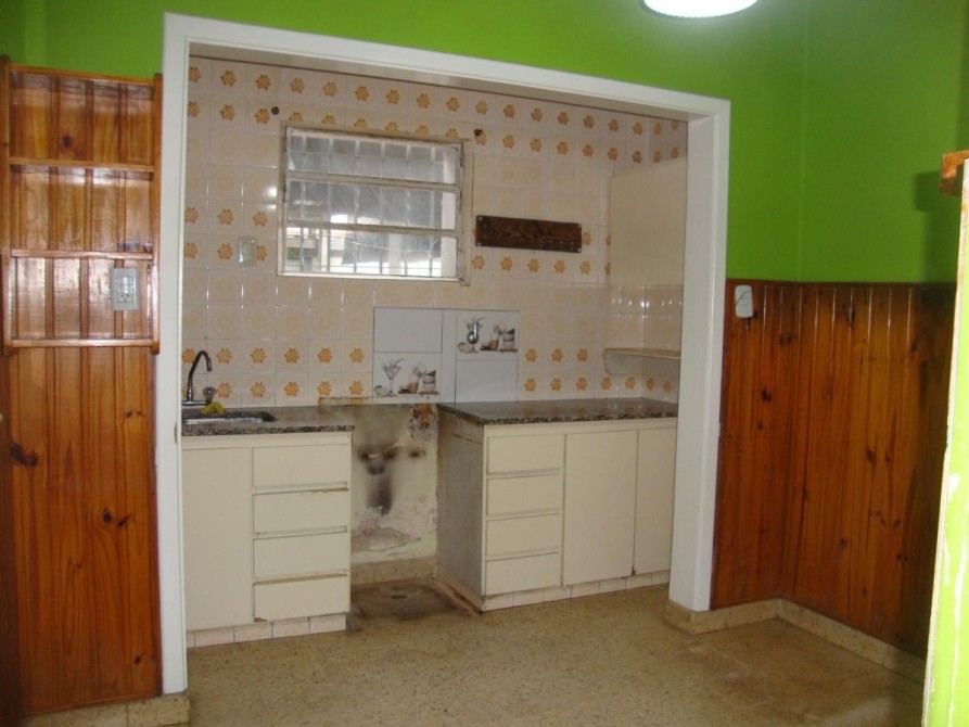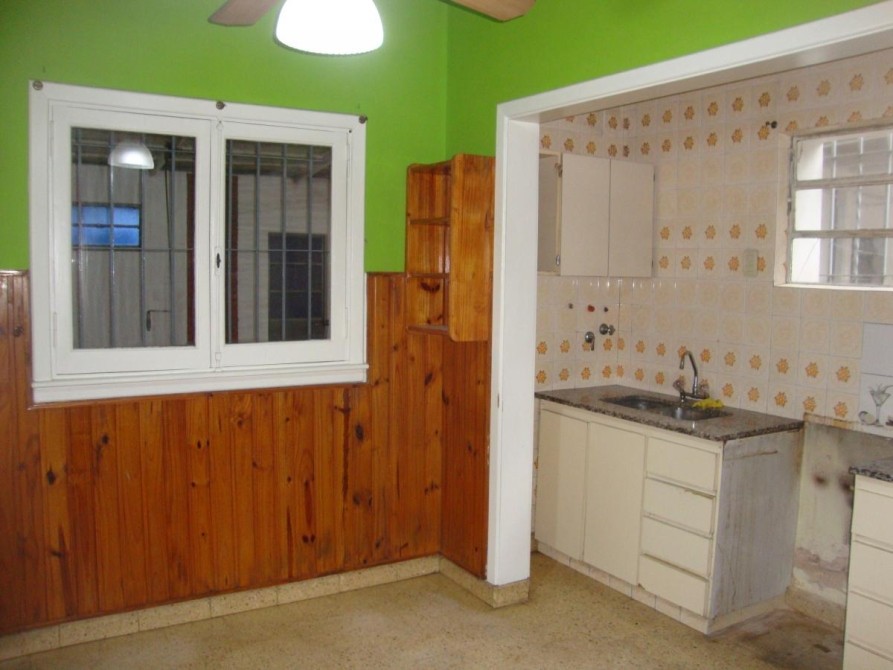 COCINA DE 3.50 x 3.20m. c/DOBLE MESADA Y DOBLE BACHA DE ACERO INOXIDABLE, c/BAJO MESADA Y ALACENA, VENTILADOR DE TECHO;