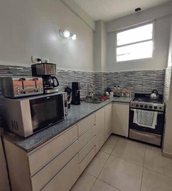 Amplia cocina-comedor de 2,70 m x 6,90 m con muebles bajo mesada y alacena tipo baulera de 1,60 m x 3 m;