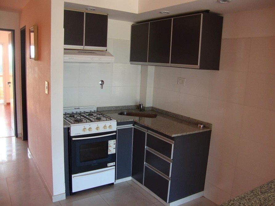 LIVING COMEDOR Y COCINA CON BAJO Y SOBRE MESADA Y BARRA DESAYUNADORA;