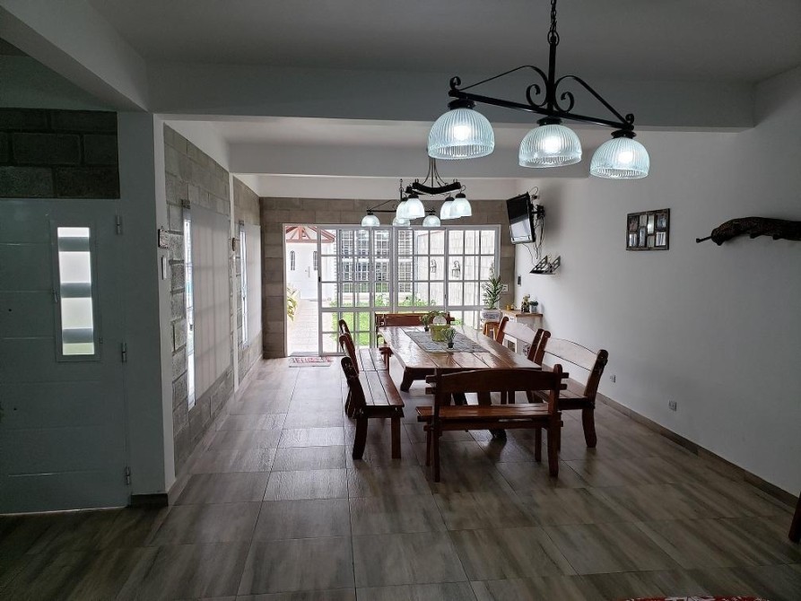 QUINCHO DE 6.50 x 11.70m. c/PARRILA, AMPLIA MESADA CON BACHA, BAÑO c/DUCHA, LAVADERO DE 1.50 x 3.60m. c/TERMOTANQUE.